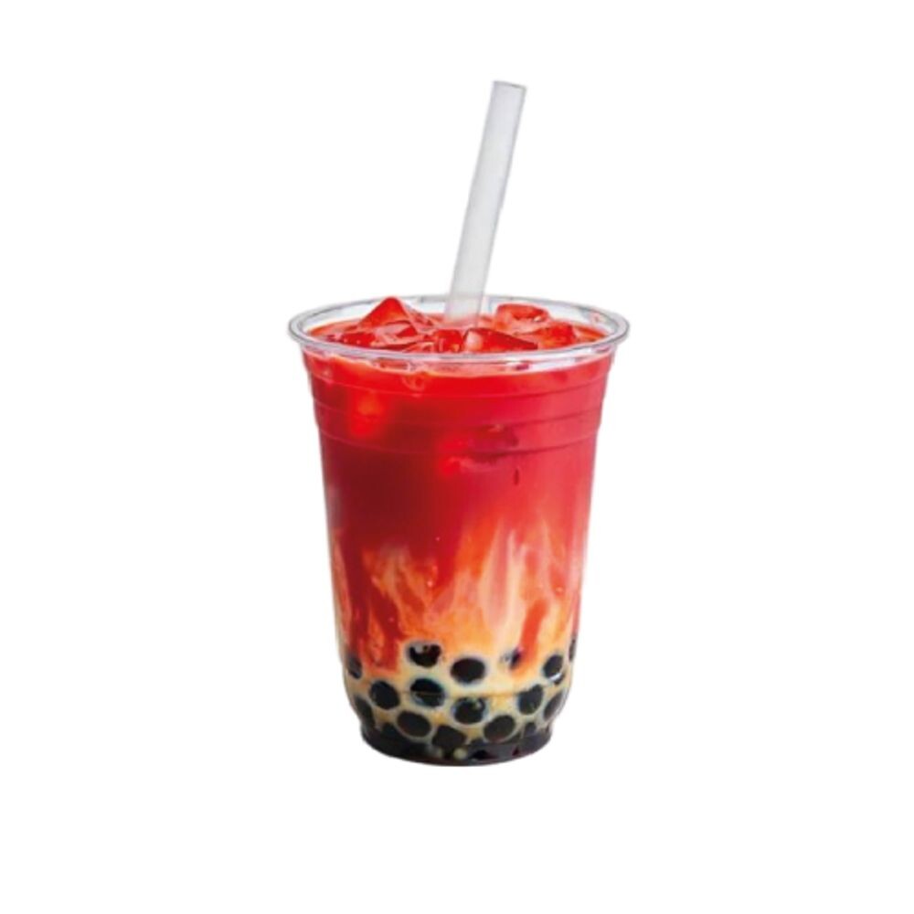 Тапиока, клубничный сироп, сироп тигровый сахар, молоко, зеленый чай жасмин, лед